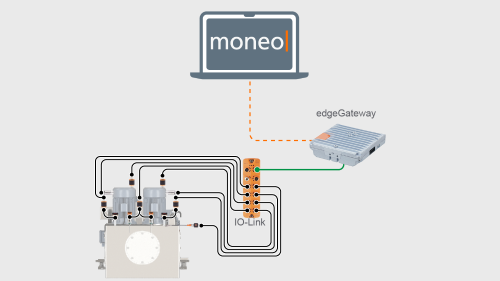Um die zahlreichen Komponenten und relevanten Messgrößen an einem Hydraulikaggregat zu überwachen, erfolgt die Installation von moneo mithilfe eines Edge.