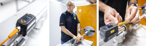 De vergelijkingsmeting van stromingssensoren voor de meting van vloeibare media gebeurt met een referentieapparaat.