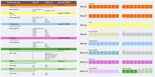 Chez ifm, nous standardisons les structures de données et vous aidons à intégrer rapidement et facilement les appareils IO-Link dans vos systèmes. Selon leur structure, les données process de certains appareils peuvent devoir être calculées ou la plage d’adresses ajustée (décalage de bits, permutation d’octets, facteur).