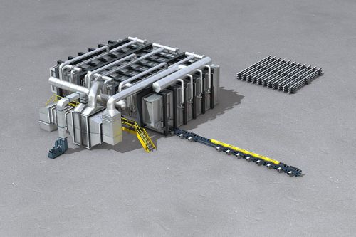 Gli impianti di laminazione a caldo trasformano i prodotti della colata continua – come lingotti, bramme, blocchi o billette – in semilavorati lunghi (vergelle, tubi, barre, rotaie, travi) o larghi (lamiere, nastri). Il processo inizia con il riscaldamento dei materiali in forni a longheroni, a spinta o rotativi, per poi passare attraverso le fasi di discagliatura, laminazione e raffreddamento.