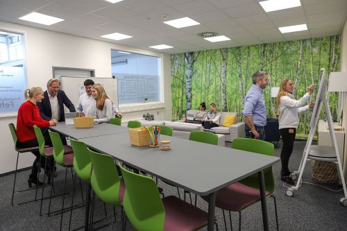 Ein Birkenwald, Stehtische, Hocker, eine Couch, modernste technische Ausstattung und farblich alles andere als Corporate Design - quasi frische Luft für das Gehirn. Mit dem HR Lab hat die Personalabteilung am Standort in Tettnang am Bodensee einen Selbstversuch gestartet und ist einen ersten Schritt in Richtung New Work bei ifm gegangen.
