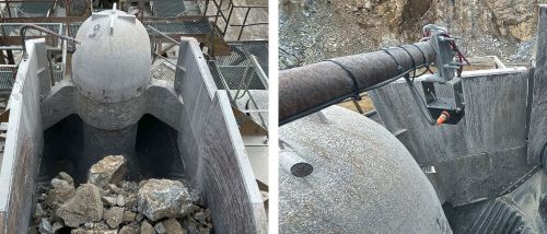 A central process step is monitoring the level in the gyratory crusher. A defined limit value must not be exceeded in order to avoid overfilling, especially as the crusher is continuously fed via a conveyor belt. The harsh, dusty ambient conditions make reliable measurement difficult. Nevertheless, precise level monitoring is essential for smooth and safe operation.