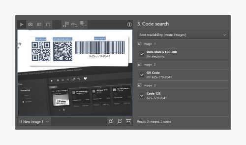 La fonction autofind code du logiciel Vision Assistant permet la détection autonome de différents codes dans une seule image. L’utilisateur peut ensuite facilement affecter ces codes dans Vision Assistant.