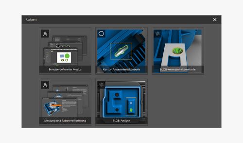 Nos assistants de mise en service facilitent grandement la résolution d’une multitude d’applications. De l’analyse de contour en passant par le contrôle de présence BLOB, jusqu’au mode défini par l’utilisateur.