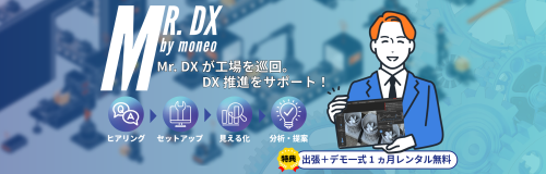 Mr. DX by moneoは、産業用IoTプラットフォーム「moneo」を活用し、設備の状態監視・予兆保全を「見える化」するための出張サービスです。