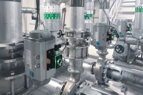 Veltinsは、醸造とボトリング工程の冷却・加熱回路に取付けていたすべてのスイベルバルブのセンサを、バルブの状態をさまざまなLED色で表示して、設置場所がすぐに特定できるMVQに順次交換することを決めました。