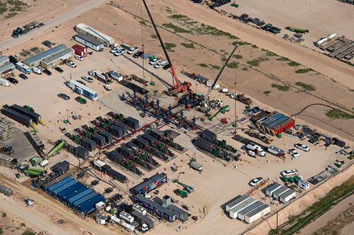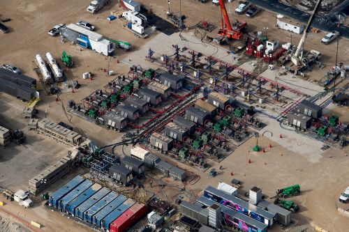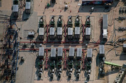 Aerial views of the hydraulic fracturing pumps onsite.