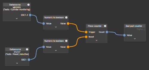 The calculated values available in the moneo IIoT software platform can be used to count good and bad parts.