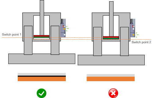 The built-in stroke counter of switch point 1 and switch point 2 can be used to count good and bad units.