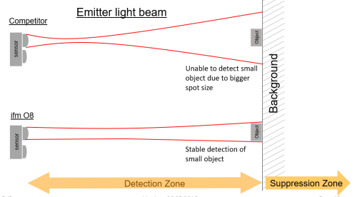 The O8 miniature photoelectric sensor offers powerful and precise optical performance in a small rectangular housing which is ideal for space-constrained applications. With a focused, accurate light spot, the O8 ensures reliable detection of even the smallest targets, regardless of color or surface finish.