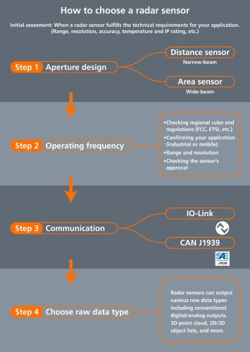 Radar sensors are often the best choice for long-distance measurements and measurements in harsh conditions. To choose the right radar sensor technology, follow these steps to determine: