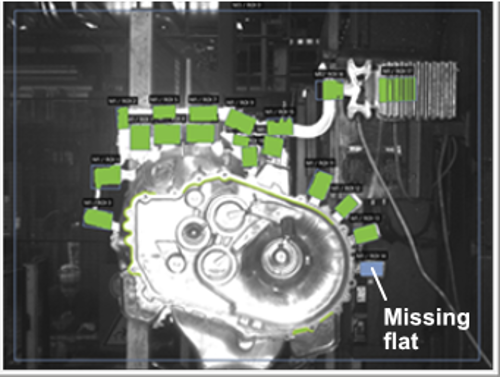 Objective: Customer wants to check the presence of 18 flats located on the outside of a gearbox. If a flat is missing then the injection molding process was not completed correctly. The customer also wants to know the location of a potentially missing flat.